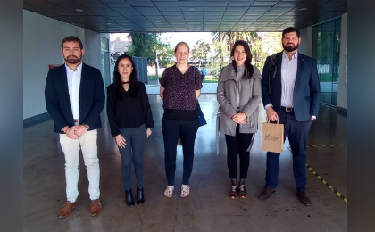 Ambos representantes de la FU-Berlín fueron recibidos por Fernando Olmos Galleguillos, director de Usach Internacional, Claudia Oliva Leiva, directora del Departamento de Educación Continua, y por Mayerley Pacheco Pinango, Coordinadora de Cooperación y Visitas Internacionales de Usach Internacional.
