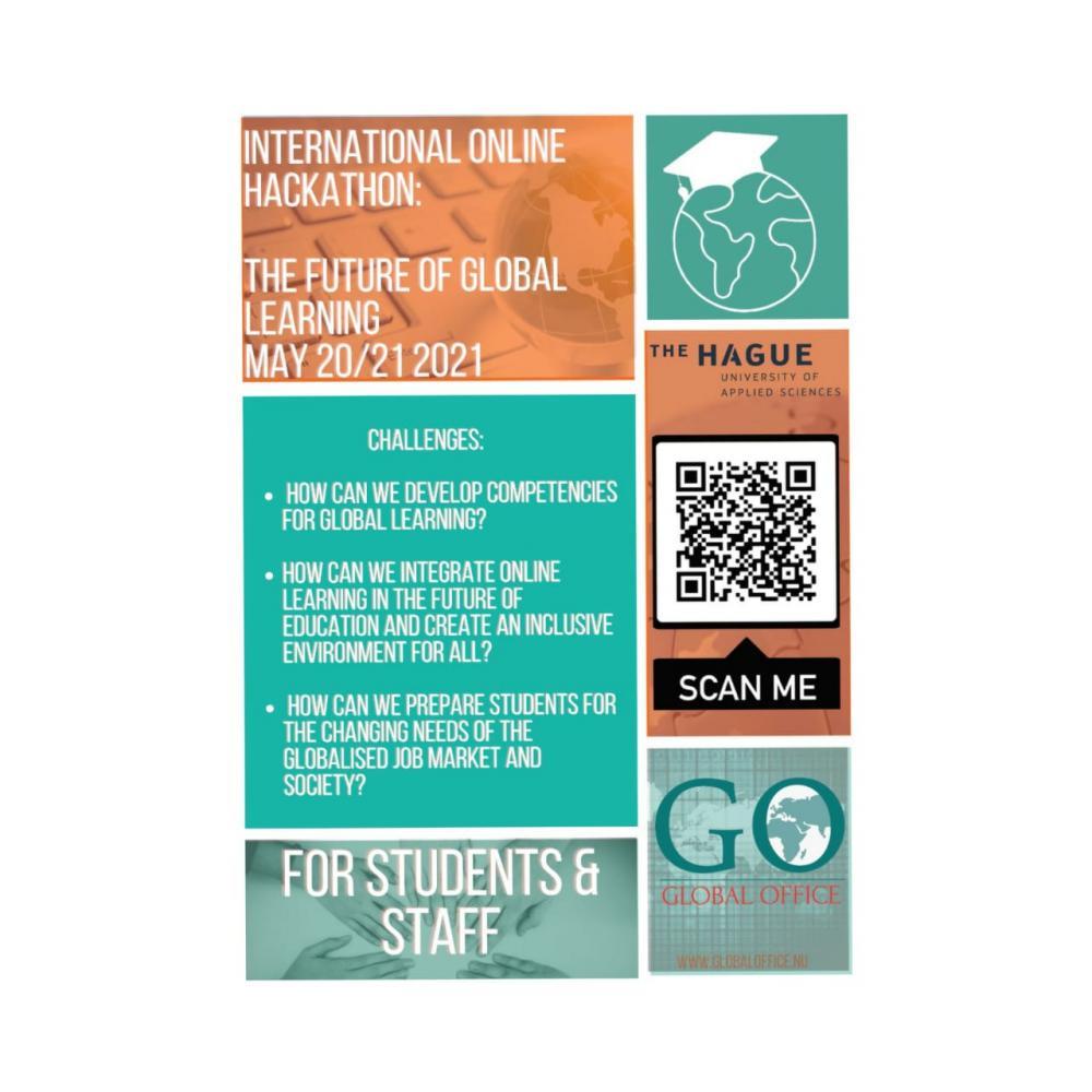 La Universidad de Ciencias Aplicadas de La Haya tiene el agrado de invitar a toda la comunidad universitaria a participar en el Hackathon internacional "El futuro del arendizaje global" durante los días 20 y 21 de mayo. El Hackathon se basa en 3 desafíos principlaes:
