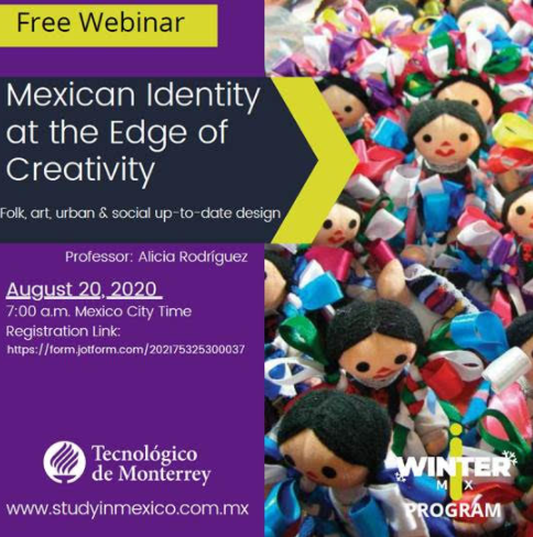 Es un placer invitarlos a usted y a sus estudiantes a participar del seminario web Identidad mexicana en el borde de la creatividad: diseño popular, artístico, urbano y social actualizado que se llevará a cabo el 20 de agosto de 2020 a las 7:00 a.m. UTC -5 (CDT) a través de Zoom. Este es el primero de una serie de seminarios web que organizaremos con diferentes temas relacionados con nuestros programas iWinter, que se espera que se ejecuten regularmente en enero de 2021.